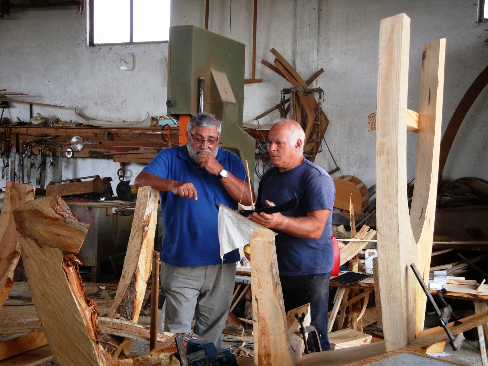 Mas a embarcação no seu tamanho natural, em todas as suas formas e dimensões, plano vélico incluído, estava ali. Era colocar, peça a peça o «desenho» sobre a madeira...e cortar… E depois usar a técnica de construção ancestral. Uma coisa foi desenhar os planos a 3D.Outra foi testar que os mesmos correspondiam ás expectativas. Foi um dia muito gratificante, em que constatei que o tempo nunca me retirou a vontade inabalável(por vezes doentia) para me desafiar em ir mais longe.